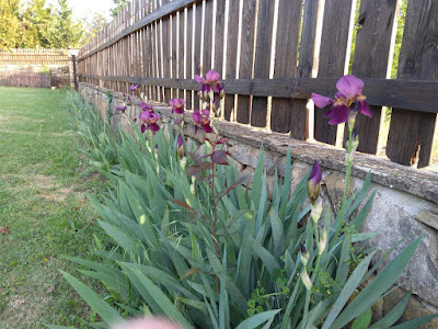 You were mistaken, alas. Sorry about that. Well, the seeds for herbs that Irena planted in her herb garden at the end of the garden and next to the wall are coming along very well. The irises by the end wall are also looking rather splendid. We inherited the irises from the house's previous owner and Irena replanted them in their new location.